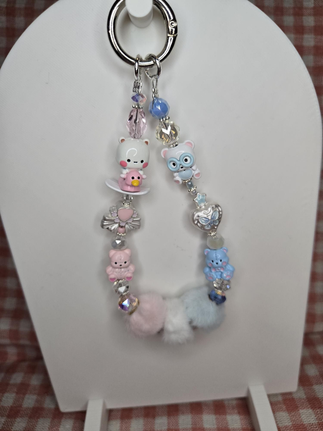 This cute hanger is made with quality metal,acrylic and glass beads.